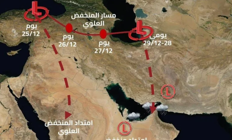 تشهد الدولة خلال الفترة من 25 إلى 29 ديسمبر الجاري أجواء لطيفة ومعتدلة بوجه عام، تميل إلى البرودة خلال ساعات الليل، نتيجة مرور امتداد منخفض جوي ضعيف.