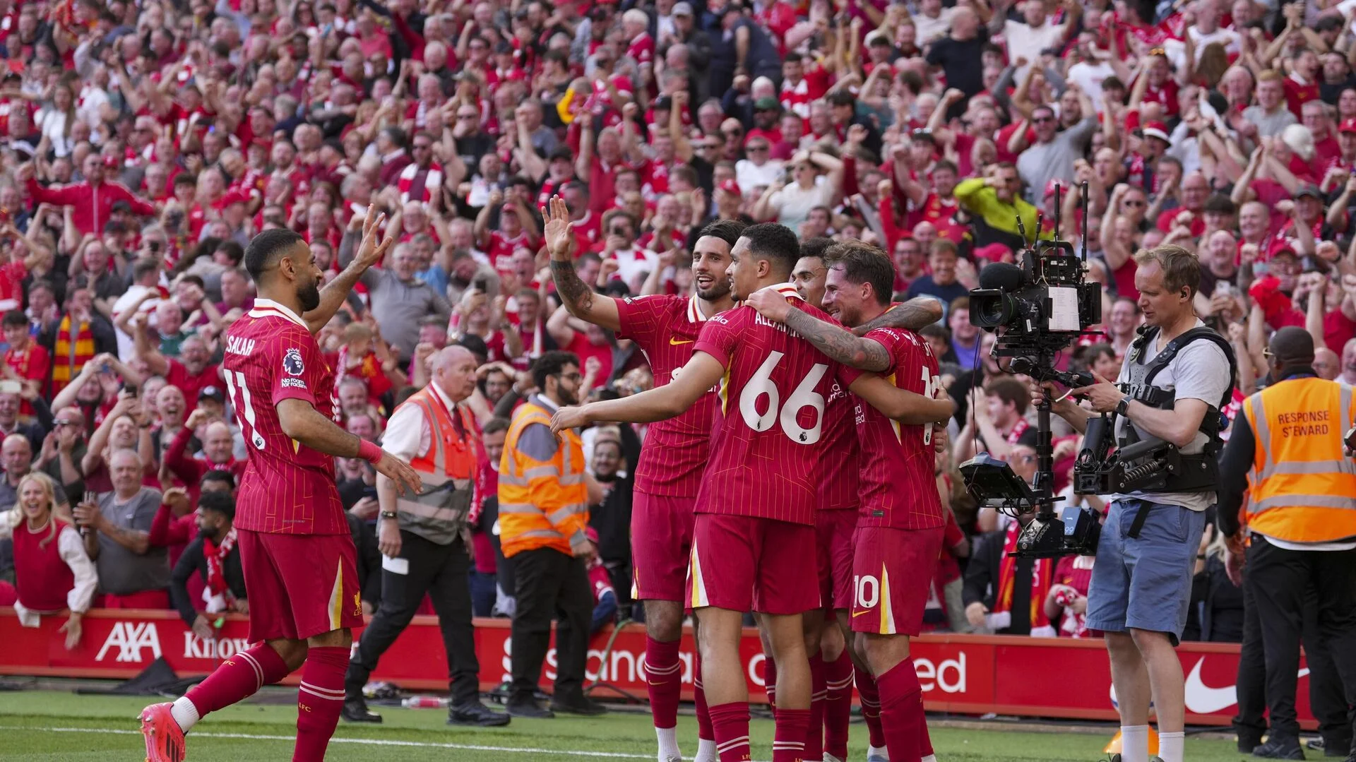 شهدت المباراة احتفالات جماهيرية كبيرة على ملعب “أنفيلد”، حيث كانت هذه هي المرة الأولى التي يحتفل فيها ليفربول بلقب الدوري الإنجليزي الممتاز بحضور الجماهير منذ فوزه بالبطولة في موسم 2019/2020، والذي تزامن مع جائحة كوفيد-19.