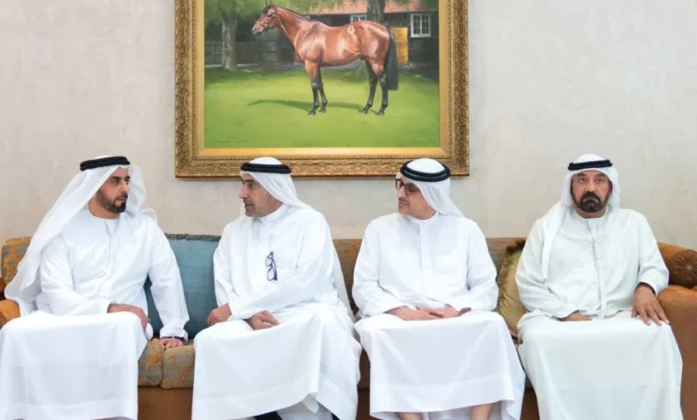 أحمد بن عبيد آل مكتوم وجمعة بن عبيد آل مكتوم ومكتوم وسعيد بن محمد بن حشر ومحمد بن سليم حضروا العزاء خلال الزيارة.