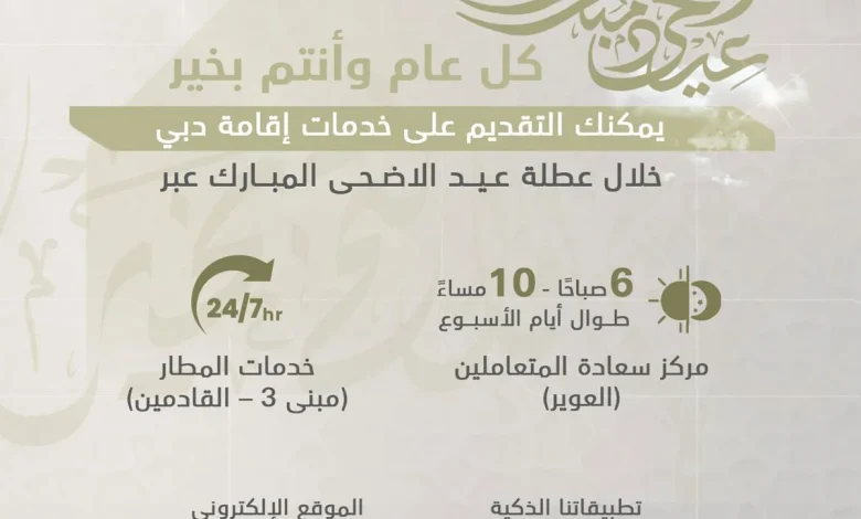 خدمات بلا توقف في العيد.. “إقامة دبي” تواكب عطلة الأضحى بخطة مرنة وساعات عمل ممتدة