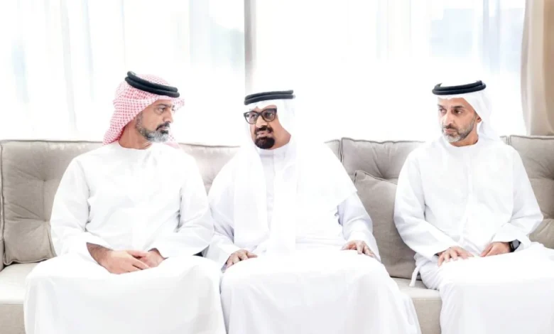 وقدّم واجب العزاء الشيخ أحمد بن حميد النعيمي، ممثل صاحب السمو حاكم عجمان للشؤون الإدارية والمالية، والشيخ عبدالعزيز بن حميد النعيمي، رئيس دائرة السياحة والإعلام، وسعادة يوسف النعيمي، مدير عام دائرة التشريفات والضيافة.