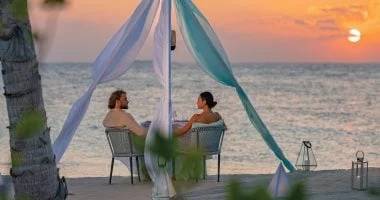 تصبح الجزيرة أكثر سكوناً مع حلول المساء. يخفت الضوء وتنعكس الشموع على الممرات، ويتحول صوت البحر إلى حضور ناعم في الخلفية. لا حفلات صاخبة ولا أماكن مزدحمة، بل مساحات تسمح بالاقتراب، بالحديث، أو حتى بالاستمتاع بالصمت.