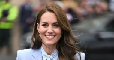 اعتمدت كيت البالطو مع صدرية ملفوفة وياقة بليزر، وحزام حول الخصر مع تنورة واسعة، ما يمنح إطلالة أنيقة ودافئة وتدرجاً ناعماً في الألوان.