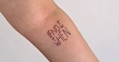 يحمل الوشم عبارة If not now then when وتُترجم إلى “إن لم يكن الآن فمتى؟” وتدل على حثّ الشخص على عدم تأجيل أحلامه أو أهدافه أو أفكاره.