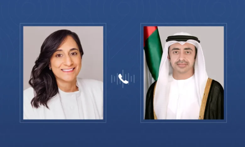 عبدالله بن زايد يبحث هاتفياً مع وزيرة خارجية كندا تعزيز العلاقات والتعاون بين البلدين
