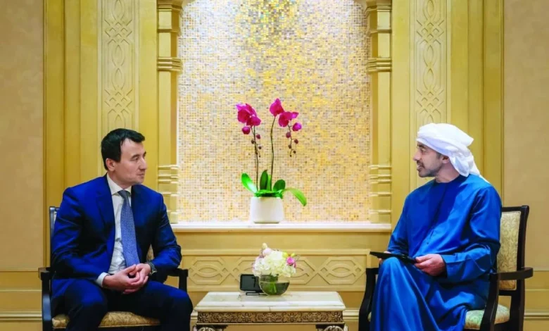 استقبل سمو الشيخ عبدالله بن زايد آل نهيان، نائب رئيس مجلس الوزراء وزير الخارجية، جمشيد خودجاييف على هامش مشاركته في أسبوع أبوظبي للاستدامة، ورحب بالضيف وتبادل معه البحث في العلاقات والتعاون بين الإمارات وجمهورية أوزبكستان، مع التركيز على تعزيز الشراكة الاستراتيجية في المجالات الاقتصادية والتجارية والاستثمارية إضافة إلى الطاقة المتجددة والبيئة والاستدامة. وتطرق اللقاء إلى أهمية موضوعات أسبوع أبوظبي للاستدامة 2026 ودوره كمنصة عالمية لتعزيز التعاون الدولي في مجال الاستدامة، وأشاد سموه بالعلاقات الثنائية المتنامية مع أوزبكستان مؤكداً الحرص على تعزيز أواصر الصداقة وروابط التعاون بما يخدم أولويات التطوير والازدهار الاقتصادي المستدام.