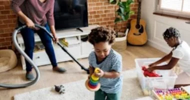 اجعل التنظيف نشاطًا ممتعًا من خلال تحويله إلى لعبة، ضع مؤقتًا وحدد وقتًا، وشجّع الأطفال على المشاركة بالغناء أو اللعب أثناء الترتيب، لتزداد متعة التنظيم.