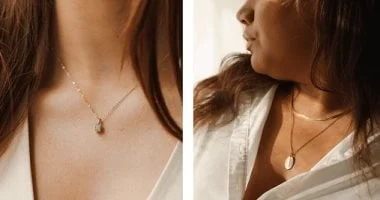يخلق الشعر الطويل خلفية طبيعية للقلادة، فتفضل القلادات القريبة من الرقبة مثل القلائد الضيقة أو سلسلة قصيرة، مع إضافة ميدالية صغيرة لتوازن الشكل وتبرز القلادة دون أن تتشابك مع الشعر.