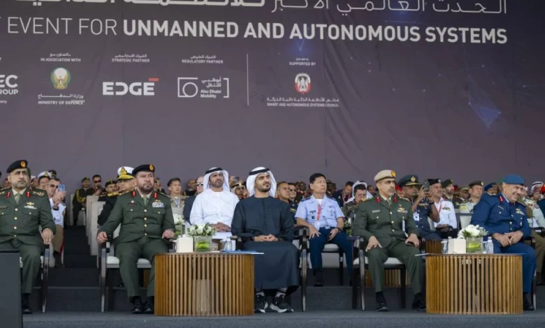 شهد سمو الشيخ زايد بن محمد بن زايد آل نهيان جانباً من العروض الحية للطائرات والأنظمة غير المأهولة في منطقة تلال سويحان، ضمن فعاليات الدورة السابعة من معرضي يومكس وسيمتكس 2026.