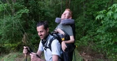 قام الفريق بتعديل حقيبة ظهر مخصصة لحمل الأطفال لتصبح وسيلة لحمل تشاندلر أثناء التنقل.