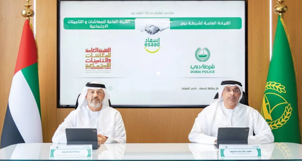 وقّع مركز بطاقة إسعاد التابع لشرطة دبي مذكرة تفاهم مع الهيئة العامة للمعاشات والتأمينات الاجتماعية في إطار تعزيز الشراكات الاستراتيجية الهادفة إلى إسعاد المتقاعدين وتوسيع نطاق الخدمات والمزايا المجتمعية بما ينسجم مع توجهات دولة الإمارات في ترسيخ جودة الحياة والرفاه الاجتماعي.