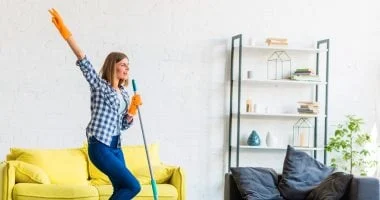 تشغيل الموسيقى الإيقاعية المعتدلة أثناء التنظيف يحفز الدماغ على التركيز ويزيد سرعة الإنجاز، كما أن الاستماع للموسيقى المفضلة يرفع مستوى الدوبامين في الدماغ ما يمنح شعوراً بالراحة والطاقة الإيجابية.