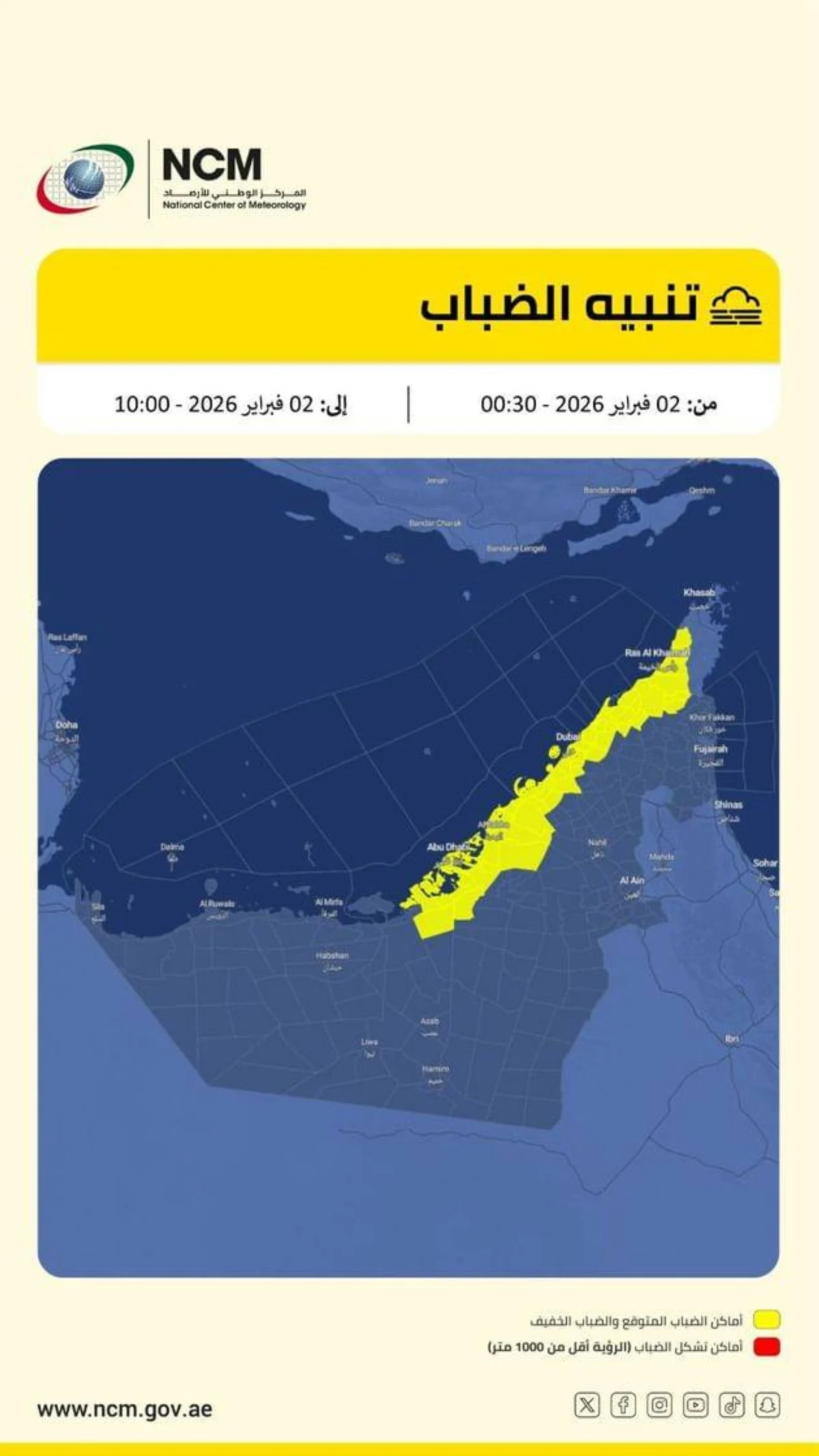 تتركّز الحالة في المناطق الساحلية والداخلية وتؤثّر في الرؤية على الطرق، فاحرصوا على قيادة حذرة وتوخّي الحذر أثناء ساعات الضباب.