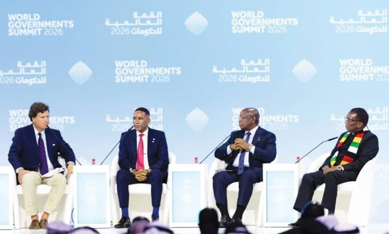 وشهدت الجلسة الرئيسية بعنوان «هل سيكون العقد القادم أفريقياً؟» ضمن أعمال القمة العالمية للحكومات 2026 مشاركة إيمرسون منانغاغوا، رئيس جمهورية زيمبابوي، ودوما غيديون بوكو، رئيس جمهورية بوتسوانا، وجوليوس مادا بيو، رئيس جمهورية سيراليون، وأدارها الإعلامي تاكر كارلسون.