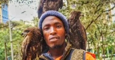 يتجول شاب يبلغ من العمر 27 عامًا في شوارع نيروبي وهو يحمل طيورًا جارحة على رأسه وكتفيه، يقضي معظم وقته في رعايتها حتى تعود إلى البرية، وبعض هذه الطيور يرتبط به بشدة ولا يرغب في مفارقته، لكنه لا يتردد في مشاركة طعامه البسيط معها مهما كان قليلاً.