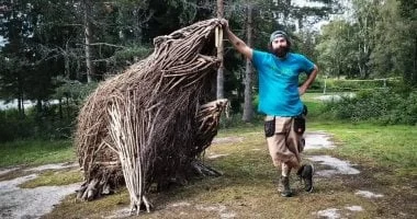 نحات يستخدم مخلفات الغابات لصناعة منحوتات أسطورية ضخمة للحيوانات