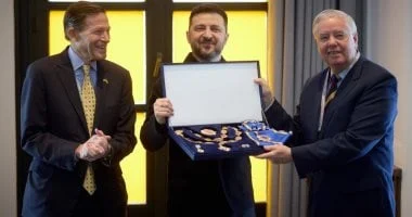 أعلن الرئيس الأوكراني فولوديمير زيلينسكي في ميونيخ خلال اجتماع مع وفد من أعضاء مجلس الشيوخ الأميركي عن شكره الدائم لدعم الكونغرس لأوكرانيا وشعبها. وأكد خصوصًا تقديره للدعم الأميركي، وبالأخص أنظمة الدفاع الجوي التي قال إنها أنقذت آلاف الأرواح. كما منح الرئيس وسام “ياروسلاف الحكيم” من الدرجة الأولى للسيناتورين ليندسي جراهام وريتشارد بلومنثال تقديرًا لمواقفهما الداعمة. وأكد أعضاء المجلس تضامنهم مع أوكرانيا وأشادوا بشجاعة الجنود الأوكرانيين الذين يواجهون الهجمات الروسية.