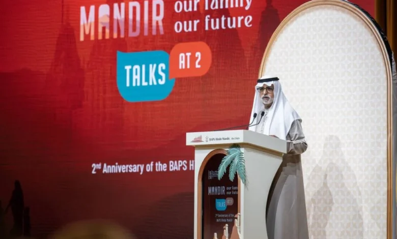 أعرب معالي الشيخ نهيان بن مبارك آل نهيان عن سعادته بمشاركته في الاحتفال بالذكرى السنوية الثانية لتأسيس معبد BAPS الهندوسي في أبوظبي، وتحت شعار «المعبد: عائلتنا، مستقبلنا»، حيث حضر أكثر من 8,000 من المصلين إلى جانب ما يزيد على 1,500 مشارك في فعالية «حوارات المعبد عند الثانية»، في مشهد يعكس عمق ارتباط المجتمع بالمعبد ودوره المتنامي كمركز للإثراء الروحي والثقافي وتجسيداً لقيم التعايش والتسامح التي أرستها دولة الإمارات في ظل قيادتها الرشيدة.