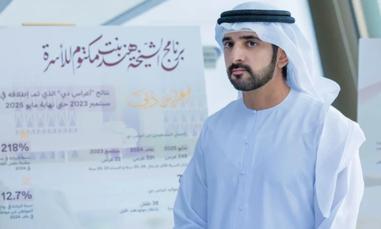 ومن أبرز المؤشرات التي استعرضها سموه، الارتفاع اللافت في الإقبال على مبادرة “أعراس دبي”، التي سجلت نمواً بنسبة 218% مقارنة بالفترة نفسها من العام الماضي، لتشكل أكثر من 27% من إجمالي الزيجات المسجلة في الإمارة.