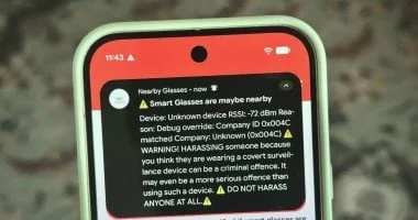 أُطلق تطبيق نظارات قريبة على متجر أندرويد ليتيح رصد وتنبيهك عندما يكون هناك شخص قريب يرتدي نظارات ذكية تسجل الفيديو أو تستمع باستمرار.