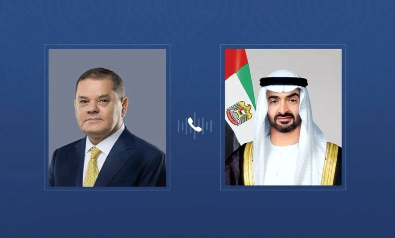 محمد بن زايد يتلقى اتصالاً هاتفياً من الدبيبة أكد خلاله تضامن ليبيا مع الإمارات إثر الاعتداءات الإيرانية على أراضيها