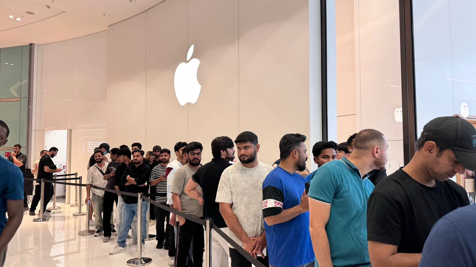 وسجل متجر “آبل” في دبي مول حضوراً واسعاً منذ ساعات الصباح الأولى، إذ توافد عشاق الهواتف الذكية للحصول على الإصدار الأحدث من سلسلة آيفون، في مشهد يعكس حجم الترقب الكبير للهاتف الجديد في السوق المحلية.