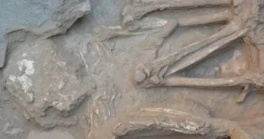 كما اكتُشفت بقايا 12 شخصًا مدفونين في أوضاع غير اعتيادية، وُجدوا مكبّلين ومقيدين، ويُرجح أنهم قُدموا كقرابين بشرية قبل نحو 2300 عام، وهو ما يعزز فرضية الطقوس الدينية المرتبطة بالعنف في تلك الحقبة.