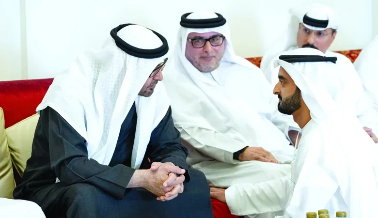 رافق سمو رئيس الدولة في تقديم واجب العزاء، سمو الشيخ حمدان بن محمد بن زايد آل نهيان، نائب رئيس ديوان الرئاسة للشؤون الخاصة، والدكتور أحمد مبارك المزروعي، رئيس مكتب رئيس الدولة للشؤون الاستراتيجية ورئيس مكتب أبوظبي التنفيذي، إلى جانب عدد من كبار المسؤولين.