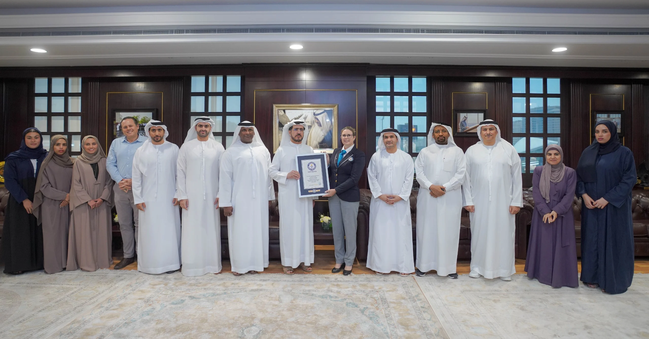 وقد تم تسليم الشهادة الرسمية من موسوعة غينيس للعضو المنتدب والرئيس التنفيذي لهيئة كهرباء ومياه دبي، سعيد محمد الطاير، خلال حفل أقيم بحضور عدد من كبار المسؤولين في الهيئة، احتفاءً بهذا الإنجاز الرائد.