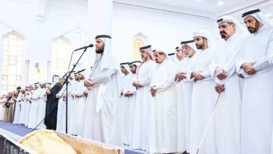 حاكم عجمان يؤدي صلاة الجنازة على جثامين عبدالرحمن النعيمي وفاطمة النعيمي